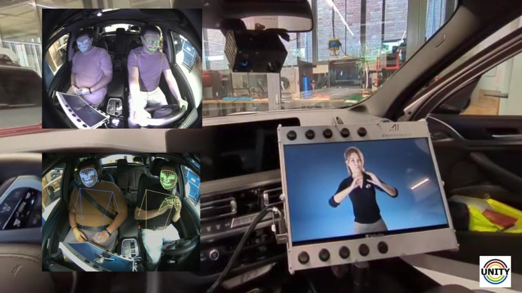 O projeto UNITY foca o desenvolvimento abordagens de reconhecimento da sinalização da Língua Brasileira de Sinais (Libras) e de Língua de Sinais Alemã (DGS) no interior de veículos de transporte de passageiros (uber, taxi, bonde, trem, navio, avião). O escopo desse projeto inclui a formulação de conceitos de Experiência do Usuário (UX) para sistemas multimidias de automóveis e de dispositivos de apresentação (monitores de vídeo, smartphones e tablets) levando em conta o comportamento dos ocupantes do veículo e sua interação apoiada em áudio, texto e avatar 3D sinalizante. O objetivo é aumentar a segurança e o conforto do passageiro e condutor dentro do veículo. A estratégia do projeto explora sensores multimodais (câmeras tradicionais, câmeras de profundidade, microfones) instaladas no veículo e redes neurais profundas para desenvolver, testar e avaliar provas de conceito funcionais.